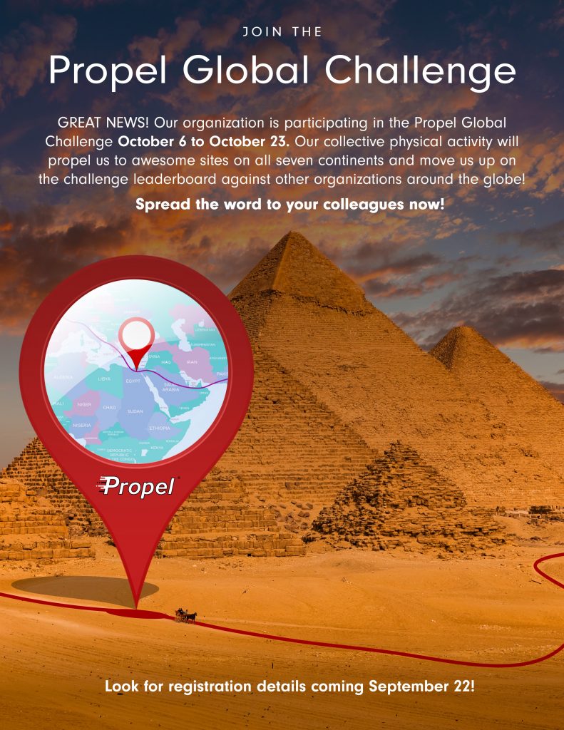 Anyone from your organization can join the Propel Challenge. This challenge is global, meaning you can offer it to your entire population. Spouses and dependents are also welcome!